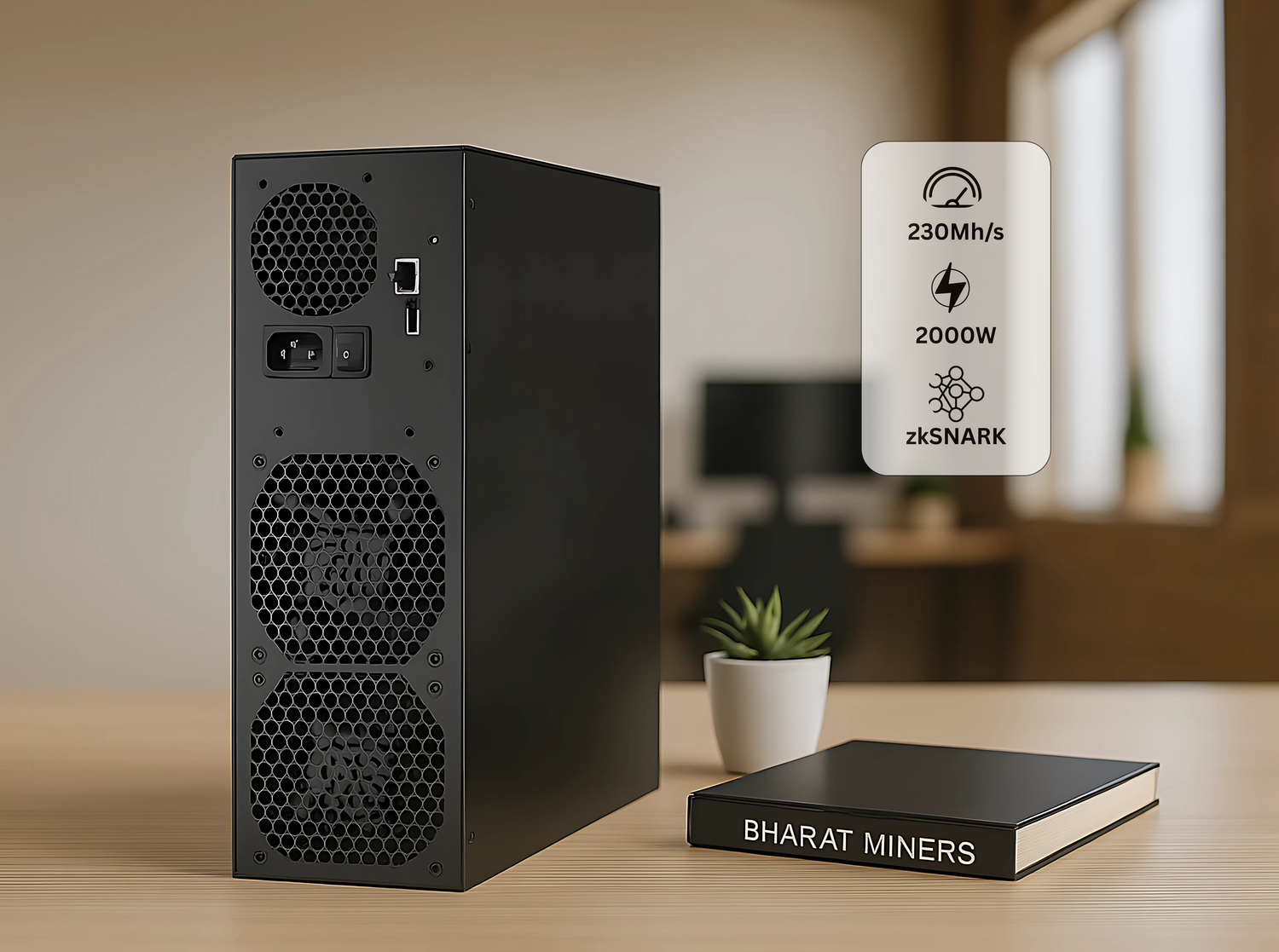 The Goldshell E-AE1M is a high-performance ASIC miner in India, designed for efficient zkSNARK mining of popular cryptocurrencies like Aleo. With hash rate 230Mh/s and power consumption 2000W, this miner offers top-tier energy efficiency at 8.7j/Mh. It features two high speed fans and operates at 45db, making it suitable for mining farms or well-ventilated setups. Ideal for anyone involved in crypto mining in India, the E-AE1M combines advanced firmware and reliable ASIC hardware to deliver a powerful and profitable Aleo miner in India.
