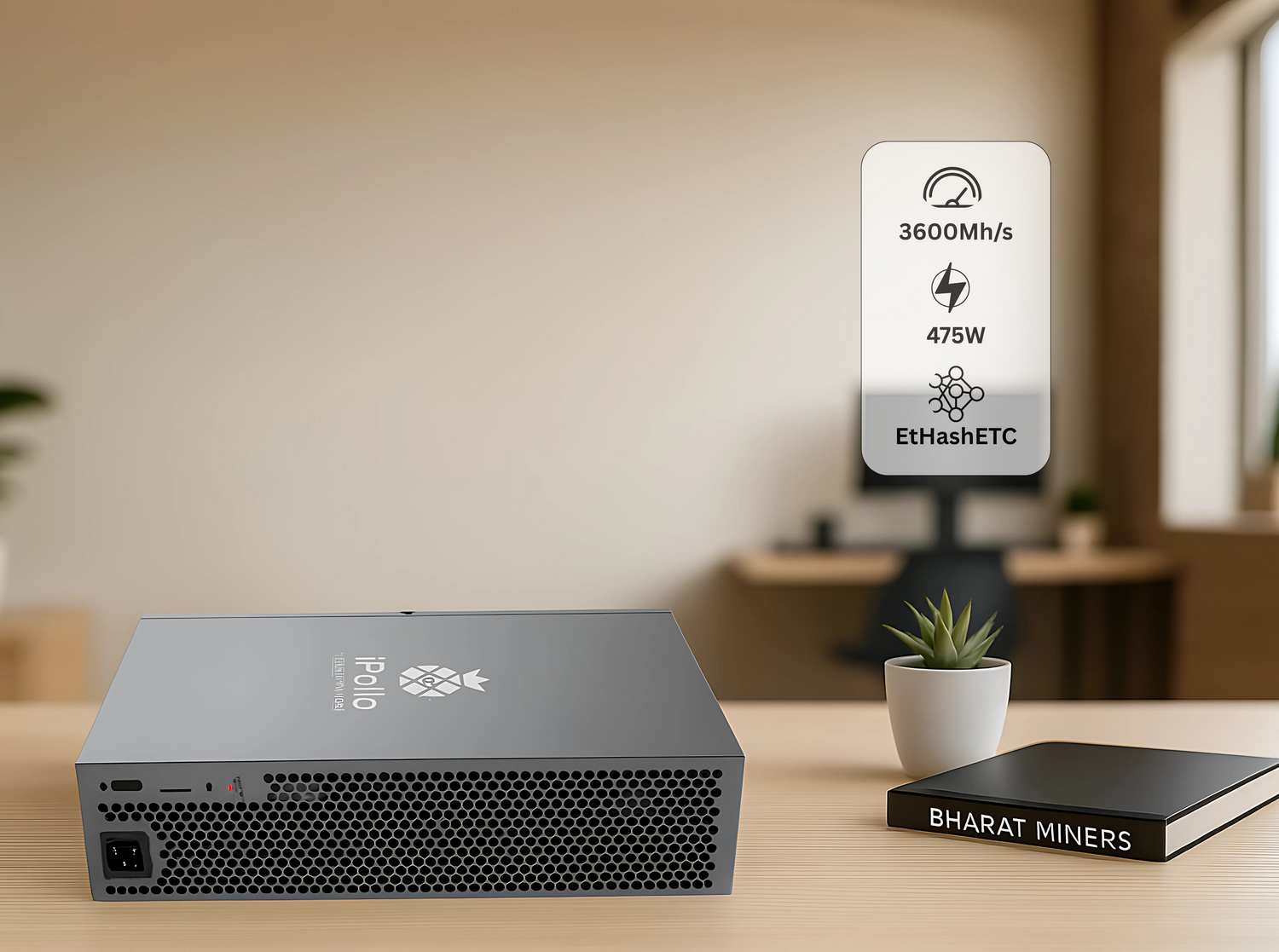 The iPollo V2H is a high-performance ASIC miner in India, designed for efficient EtHashETC mining of popular cryptocurrencies like ETC With hash rate options of 3200Mh/s, 3600Mh/s and power consumption 475W, this miner offers top-tier energy efficiency at 0.14j/Mh. It features high speed fan and operates at 65db, making it suitable for mining farms or well-ventilated setups. Ideal for anyone involved in crypto mining in India, the iPollo V2H combines advanced firmware and reliable ASIC hardware to deliver a powerful and profitable ETC miner in India.