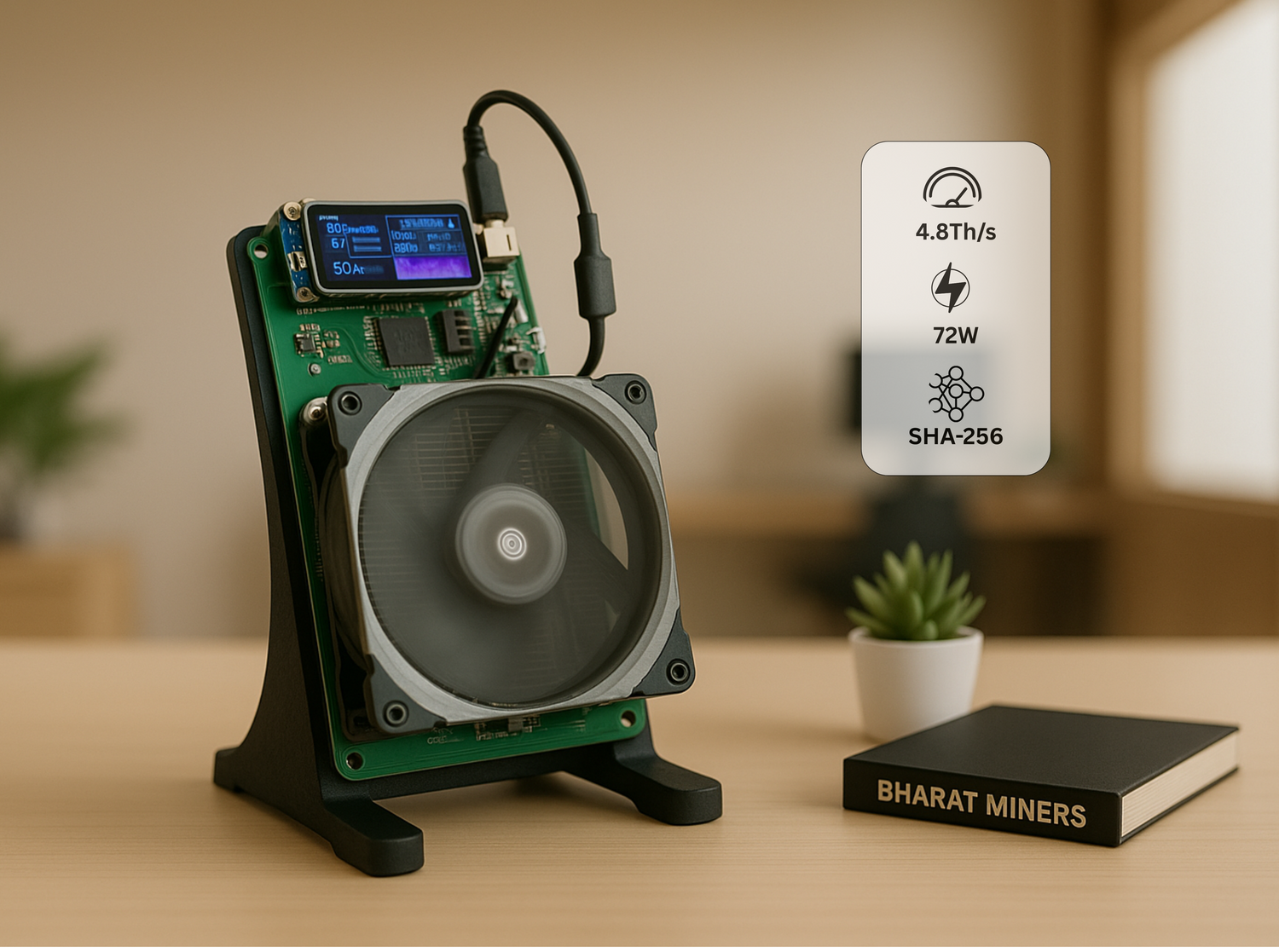 The NerdMiner NerdQaxe++ is a high-performance ASIC miner in India, designed for efficient SHA-256 mining of popular cryptocurrencies like bitcoin. With hash rate 4.8Th/s and power consumption 72W, this miner offers top-tier energy efficiency at 15j/Th. It features one high-speed fans and operates at 40db, making it suitable for mining farms or well-ventilated setups. Ideal for anyone involved in crypto mining in India, the NerdQaxe++ combines advanced firmware and reliable ASIC hardware to deliver a powerful and profitable Bitcoin miner in India.