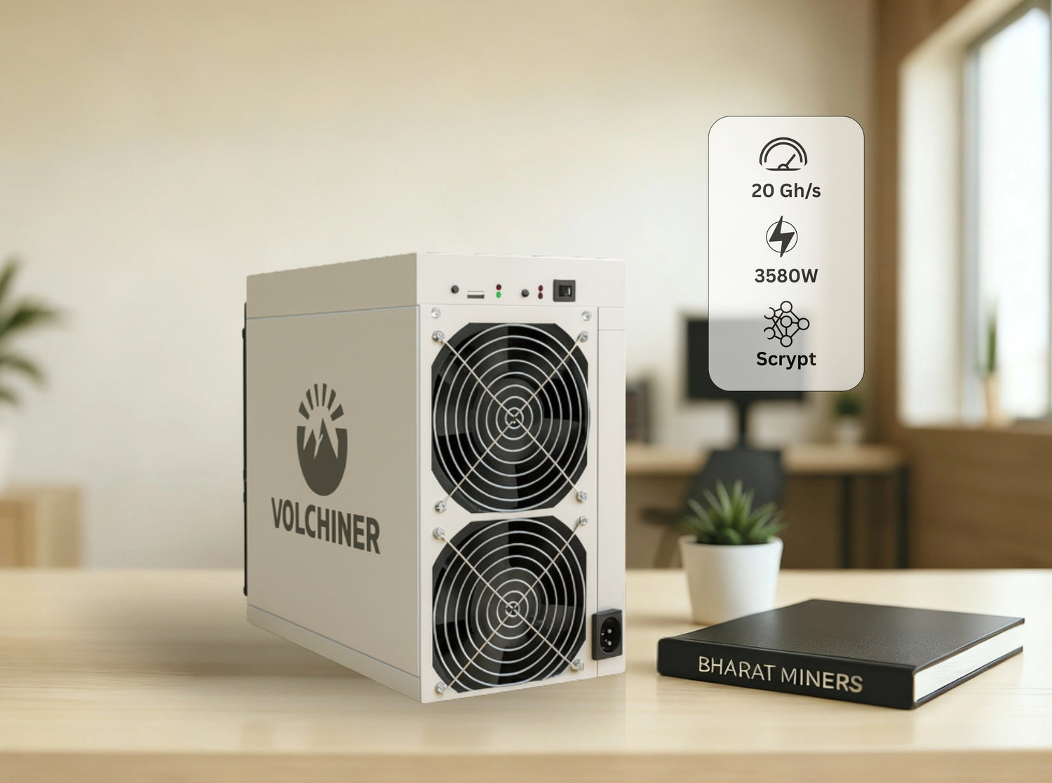 The VolcMiner is a high-performance ASIC miner in India, designed for efficient Scrypt mining of popular cryptocurrencies like Dogecoin and Litecoin. With hash rate 20Gh/s and power consumption 3580W, this miner offers top-tier energy efficiency at 0.18j/Mh. It features high-speed fans and operates at 75db, making it suitable for mining farms or well-ventilated setups. Ideal for anyone involved in crypto mining in India, the D3 combines advanced firmware and reliable ASIC hardware to deliver a powerful and profitable Dogecoin miner in India.